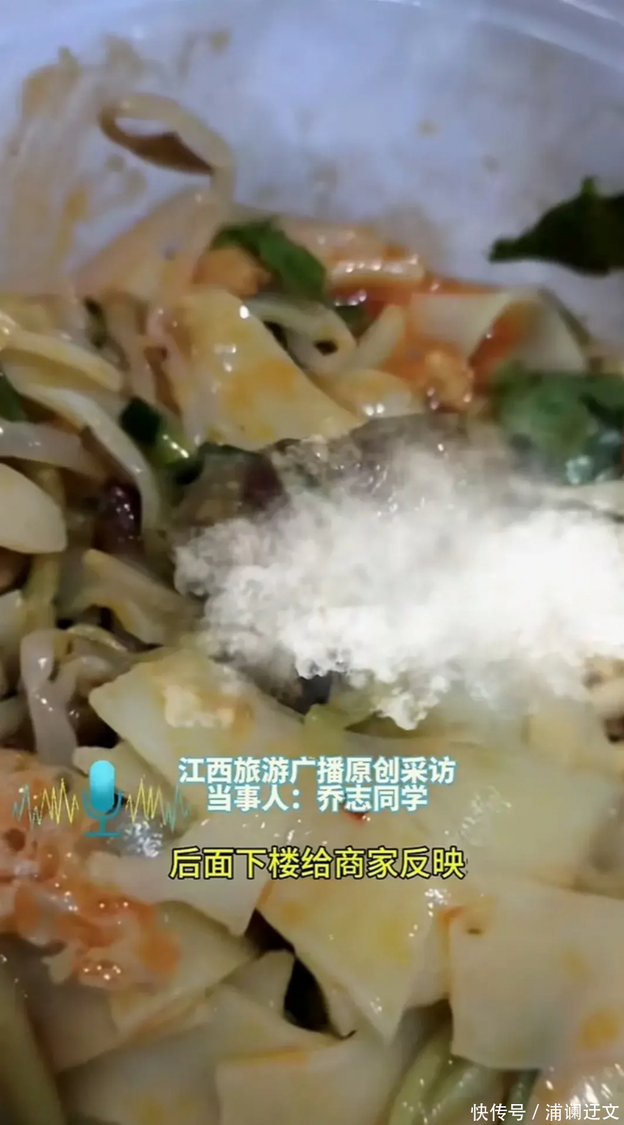 男子买凉皮疑似吃到排泄物,找商家理论,商家:补偿个煎饼给你