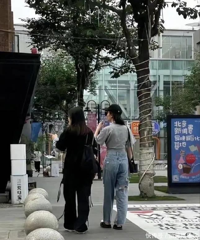 刘亦菲跟闺蜜逛街被偶遇,感叹是真美啊,小肚子双下巴都看得见但一点不显老!