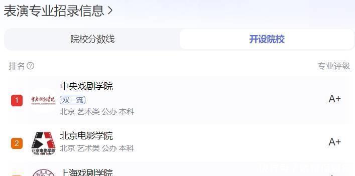 老同学说出原因,并非荣梓杉本人主动进群的国内表演专业学科评估结果为A+的高校有三个,排名第一的便是中戏,第二名是北电第三是上戏。中戏是这三所高校里,唯一一所双一流大学。如果两所高校同时补录,考生在第二次填报志愿的时候,相信绝大多数人都会优先选择中戏。