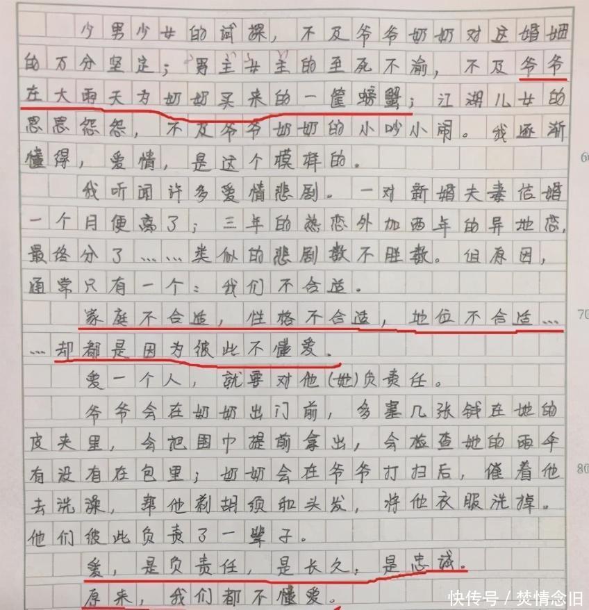初中生关于爱情的作文,流水账一般的内容,却将爱表现得淋漓尽致
