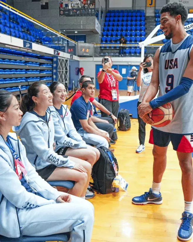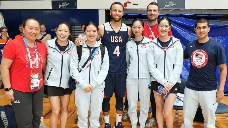 全都是华裔面孔!美国男篮球员库里和哈利伯顿训练后与美国女子乒乓球队见面!
