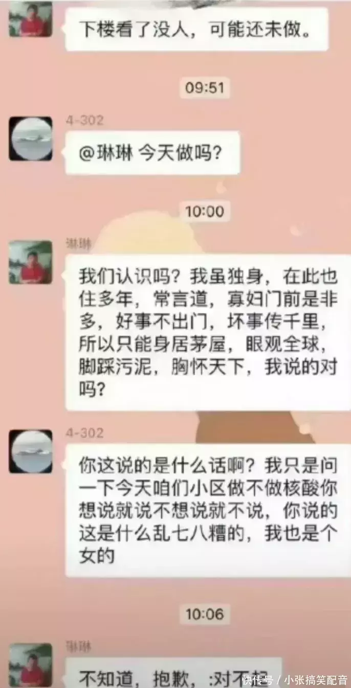 有一个百思不得其解的问题:为什么天底下的业主群,不管是中低档小区,还是高档小区,总是有几个吱哇乱叫的人啊,他们难道没有意识自己有些时候很奇怪么?