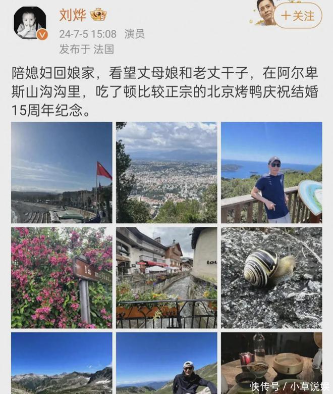 刘烨陪国外妻子回娘家庆祝结婚15周年,晒照妻子一双儿女均未出镜
