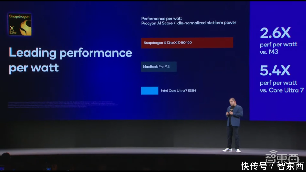 根据高通AI技术白皮书,高通的Hexagon NPU专门面向兼顾低功耗和稳定性的高性能AI推理设计,而此次骁龙X Elite的NPU每瓦特性能已经达到2.6倍于苹果M3芯片、5.4倍于英特尔酷睿Ultra 7处理器。
