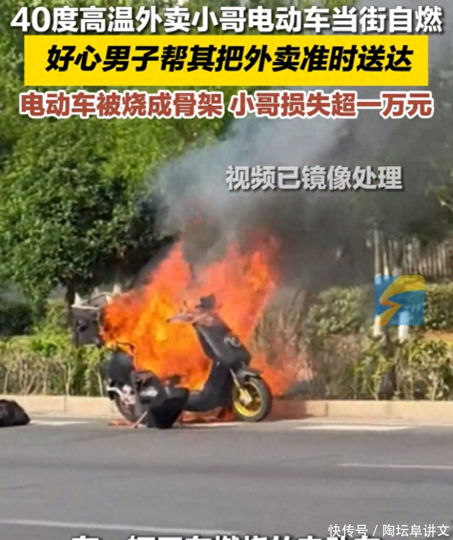 燃起来了!安徽一外卖小哥电动车发生自燃,电动车被烧只剩骨架!