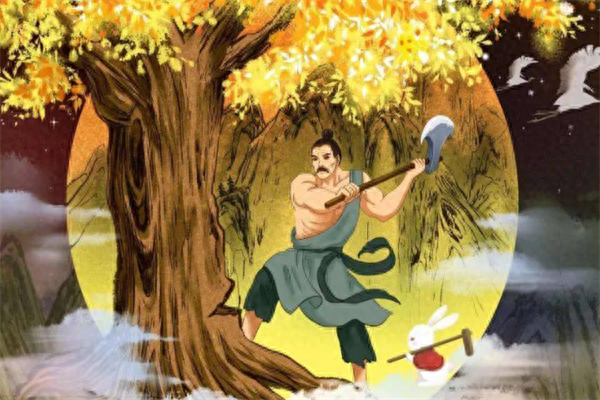 但每年的农历8月15,人们就会发现,皓月当空的月亮女神中,似乎有一个男子,在挥舞着斧头,不停地砍伐着树木。
