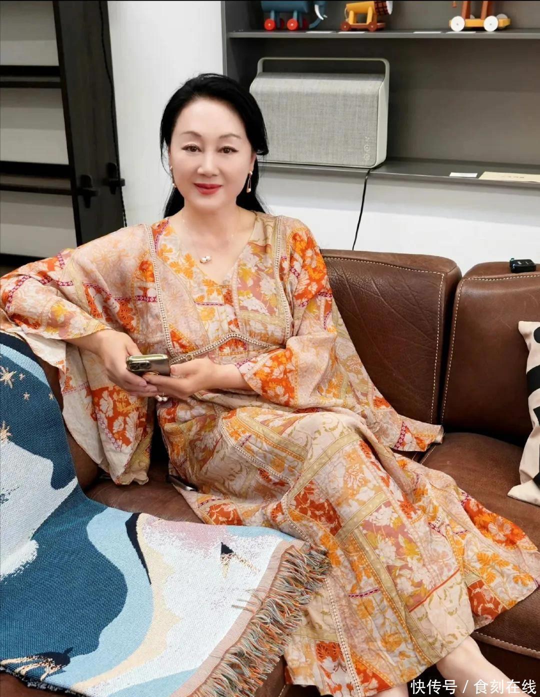 王姬容光焕发,在家穿真丝长裙珠圆玉润很有富家奶奶样,素颜却苍老判若两人!