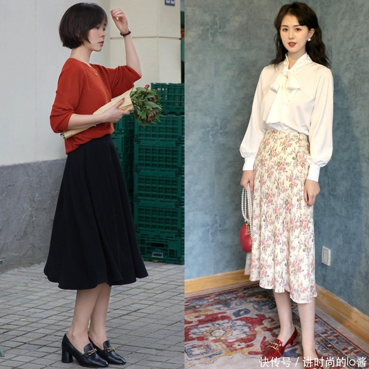 >乐福鞋配裙子,优雅有女人味