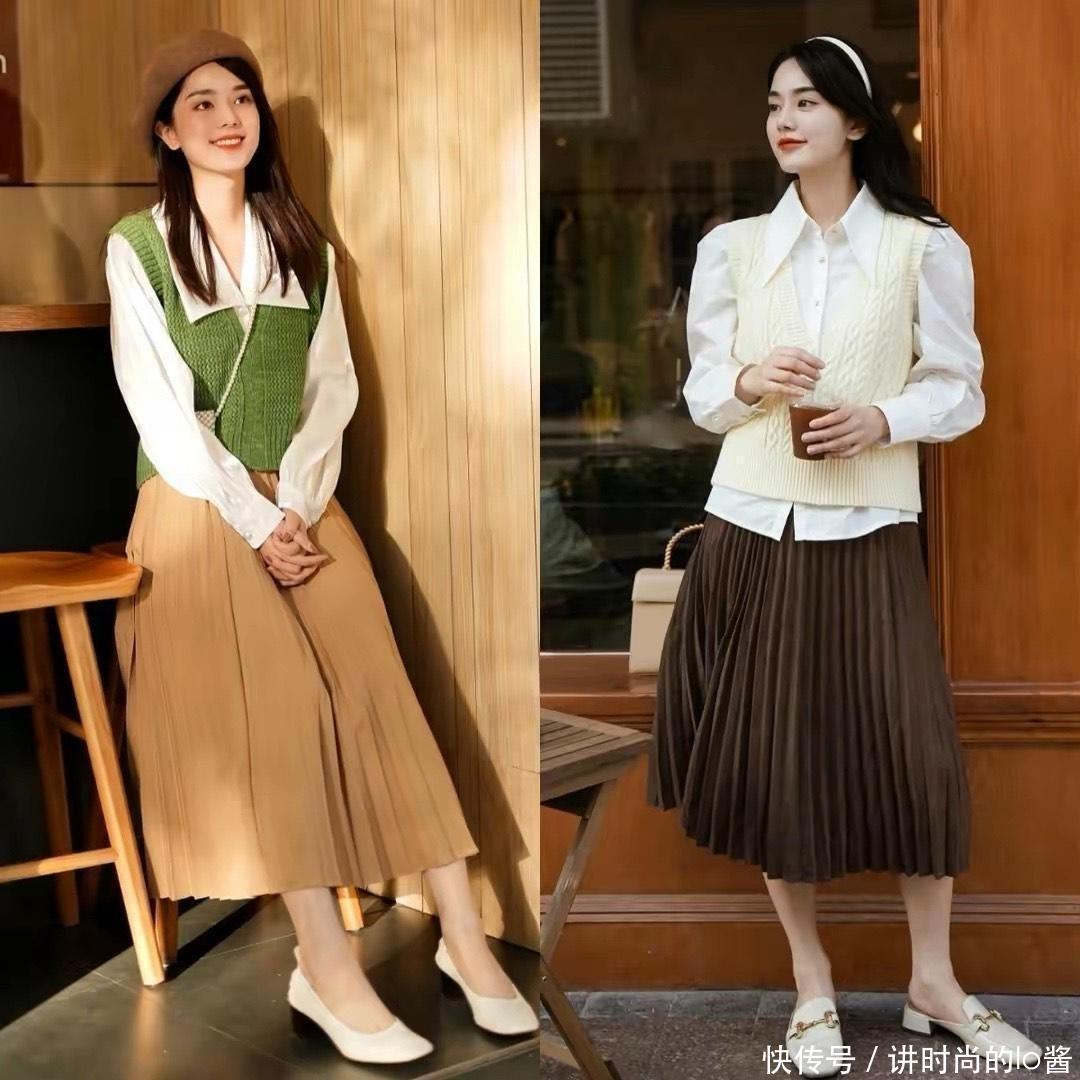 公式三、乐福鞋配拼接长裙