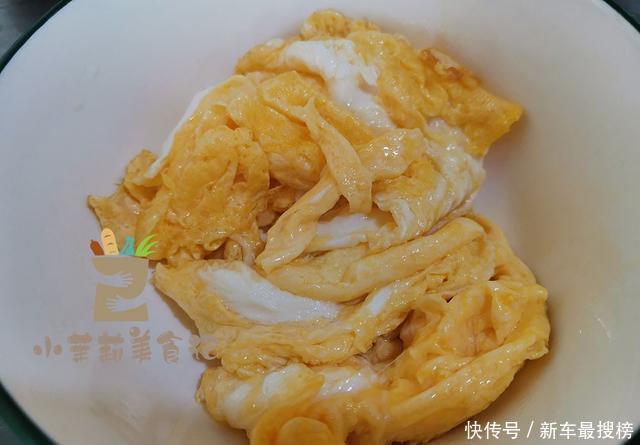 3、鸡蛋两个,首先敲到碗里打散,之后起锅烧油,先将蛋液炒成块状盛出。