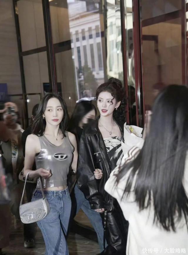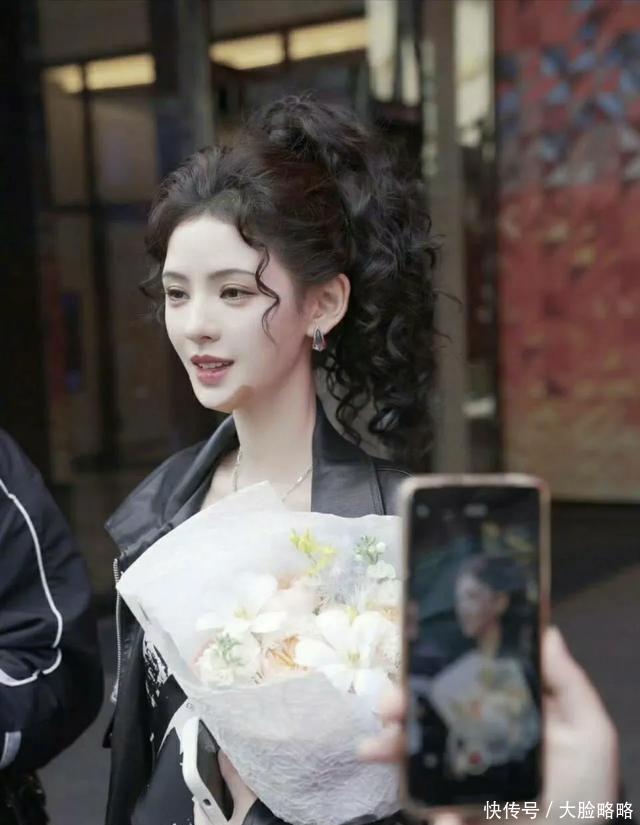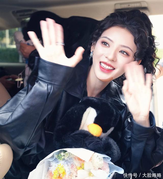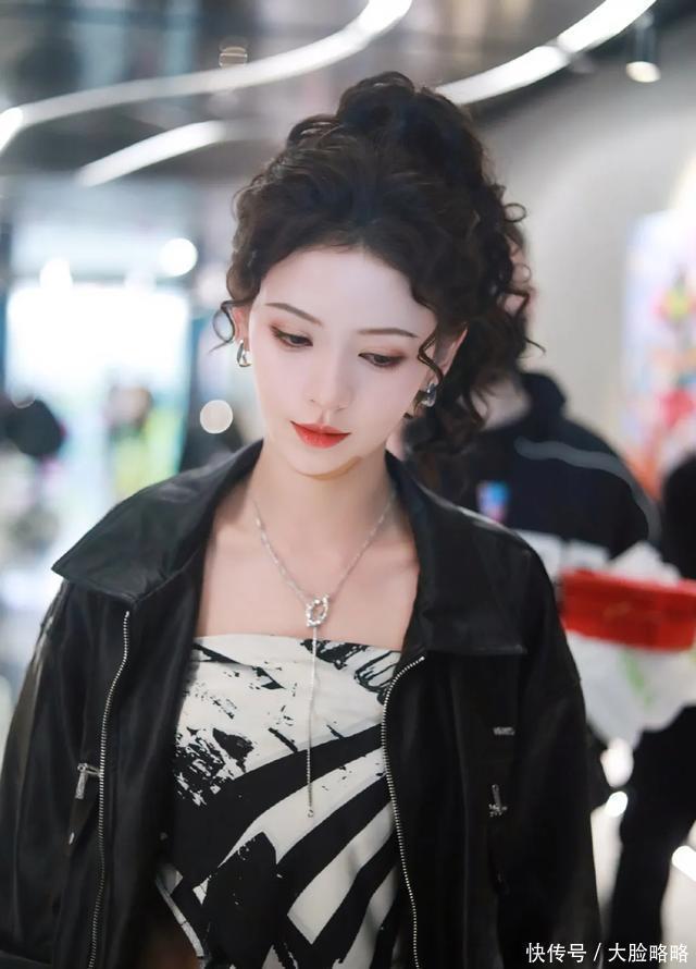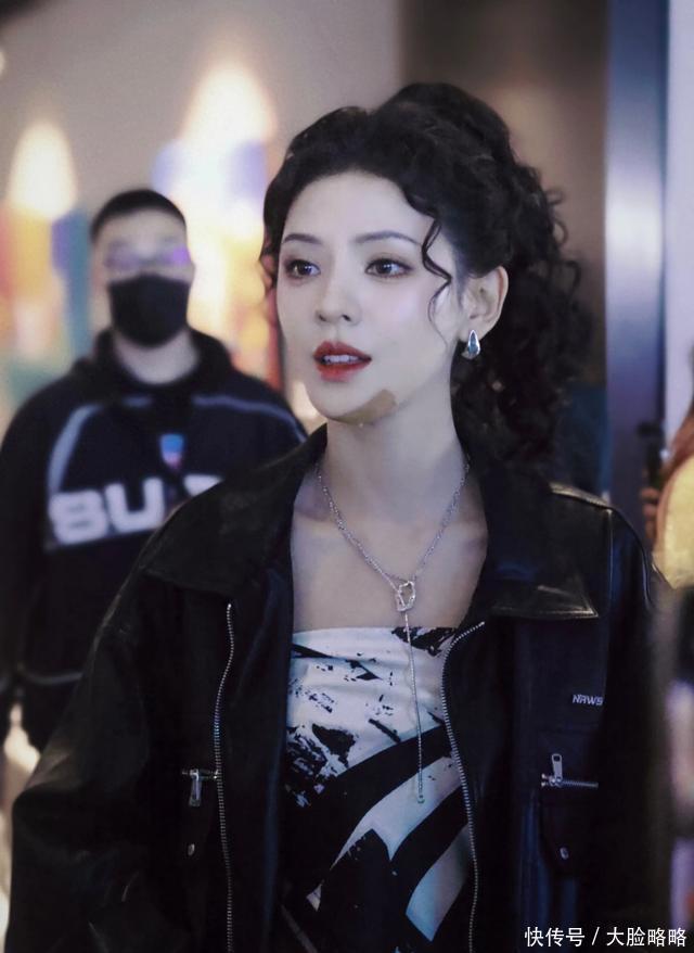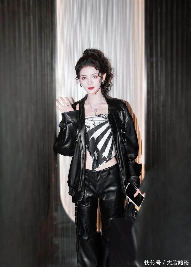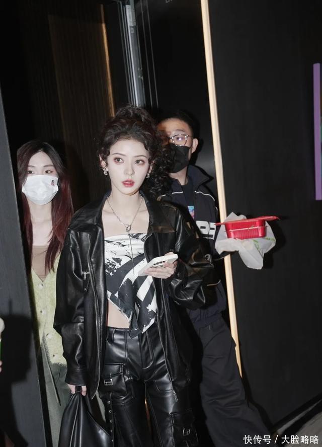 张予曦全妆浪姐5录制路透,皮衣套装,羊毛卷马尾,个性酷女孩