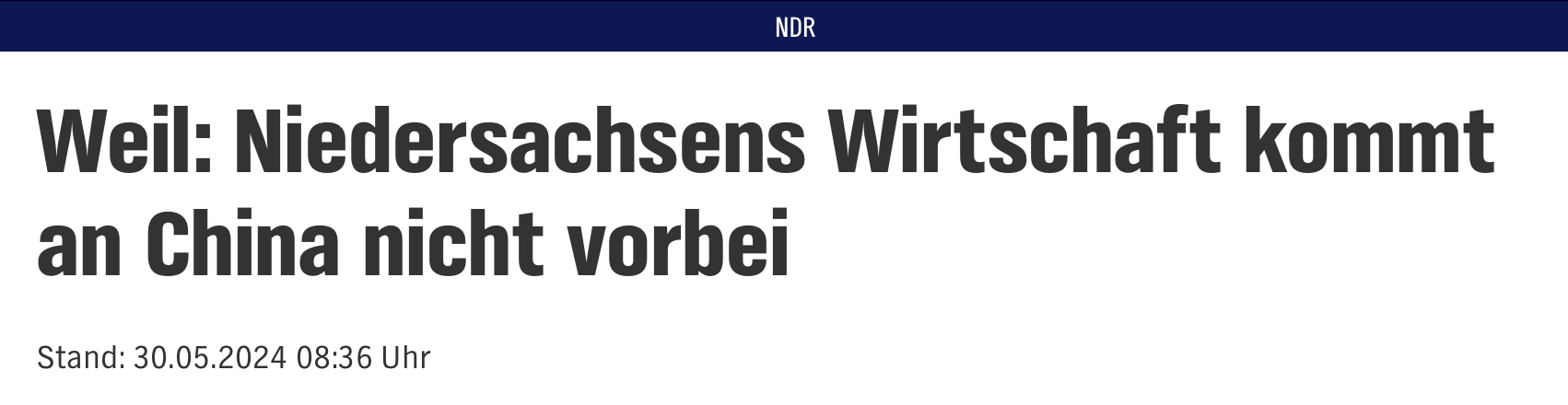 尽管如此,魏尔在访问期间明确表示,他仍然将中国视为重要的贸易和经济伙伴:“‘去风险’并不意味着不能进行更多投资。”或者换句话说:多一点谨慎——但如果没有中国,这行不通。
