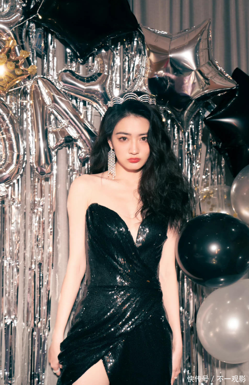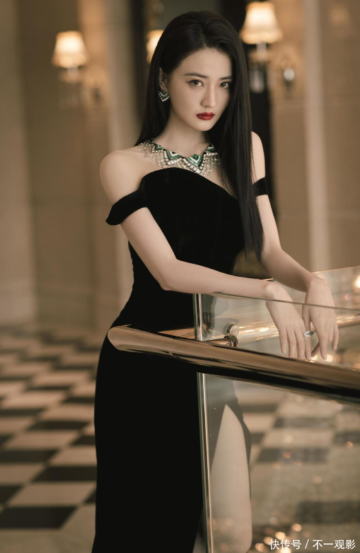 在一次盛典中,她便身穿一袭高开叉的黑色连衣长裙。