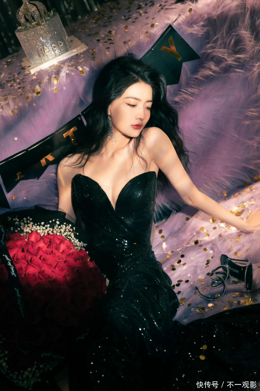 她好像很喜欢穿黑色的长裙,曾经还特意挑选了一件抹胸款的黑色高开叉连衣裙。