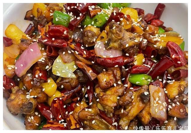 5、撒上芝麻,香喷喷的辣子兔丁出锅啦!这道干煸辣子兔丁分分钟让你炫两碗饭,好吃的不得了!