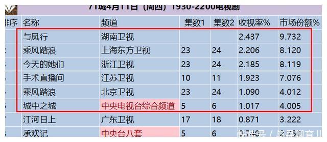 电视剧收视率排行榜,《城中之城》排在最后,第一收视高达2.437%