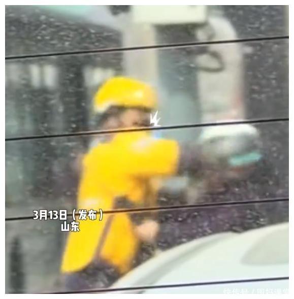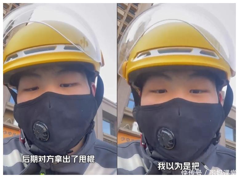 网友直言:若不是黑衣男子头上戴着头盔,恐怕会被外卖小哥打成猪头一般。