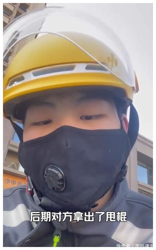 外卖小哥称,当时自己被辱骂没有还口,但对方突然拿棍子抽打自己,自己当时还以为是刀子,当对方打在自己身上的时候,于是开始了反击。并直言自己的拳头没有发力。