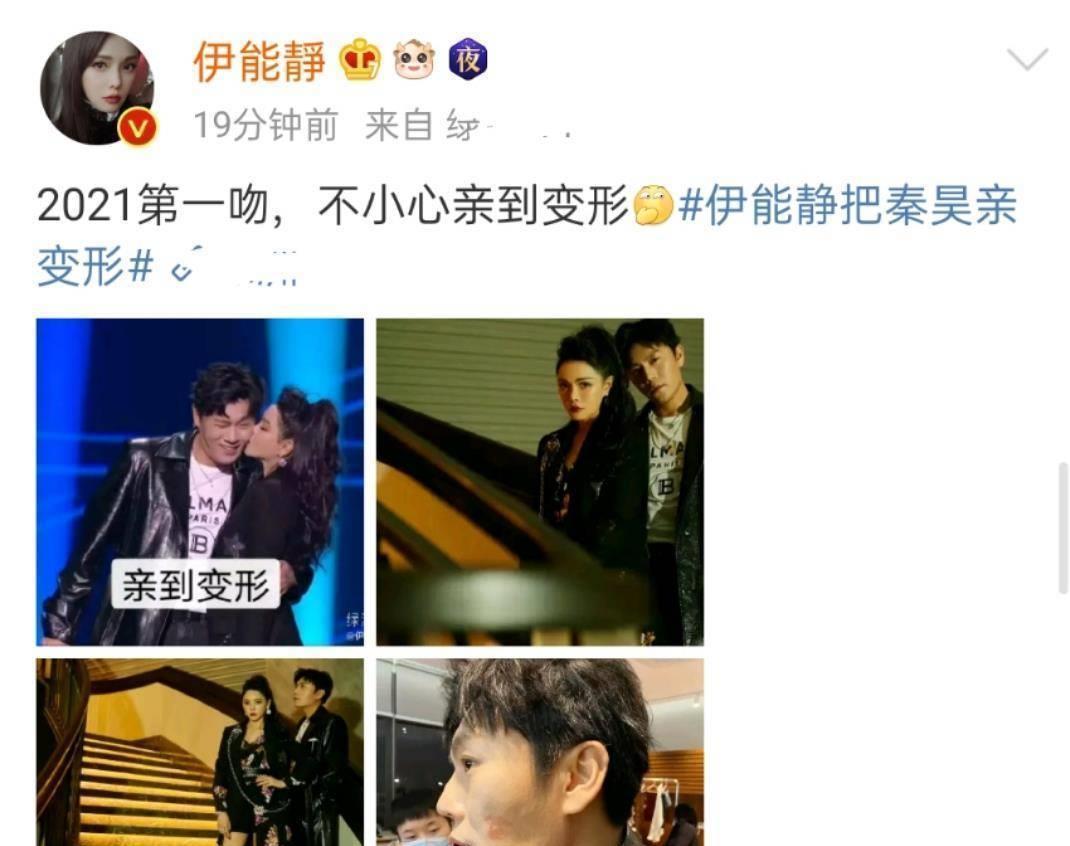伊能静晒与秦昊恩爱合照,发文:2022第一吻,不小心亲到变形