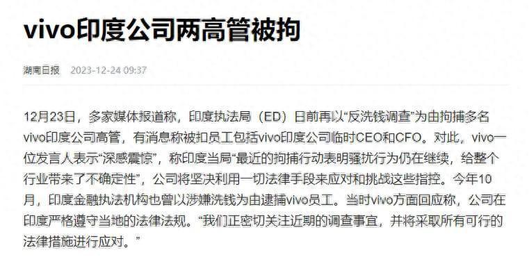 “外企杀猪盘”印度,抓走vivo2名高管,影响有多恶劣?